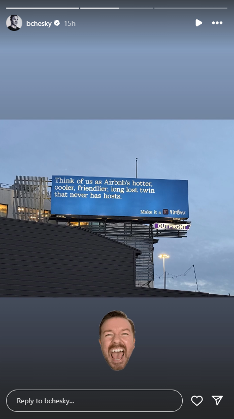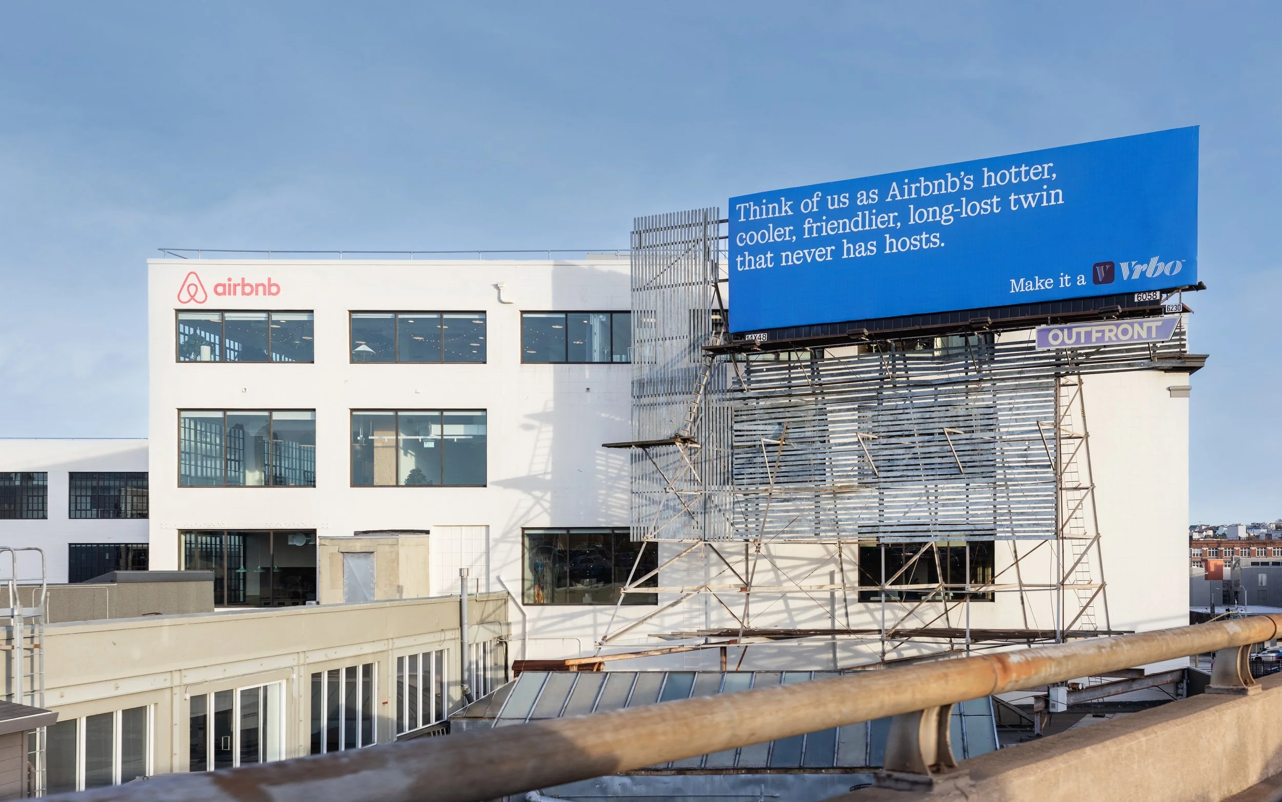 We worked with our media team to secure a billboard in San Francisco located right next to Airbnb’s HQ. Then took full advantage of the placement. Airbnb founder Brian Chesky rage posted about it to his 160K IG followers, The Wall Street Journal wrote about it in their print edition, and a travel company we’d never heard of copied it word for word.